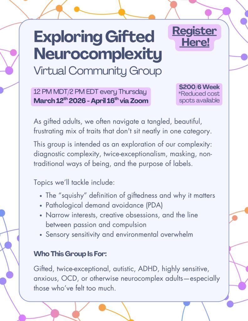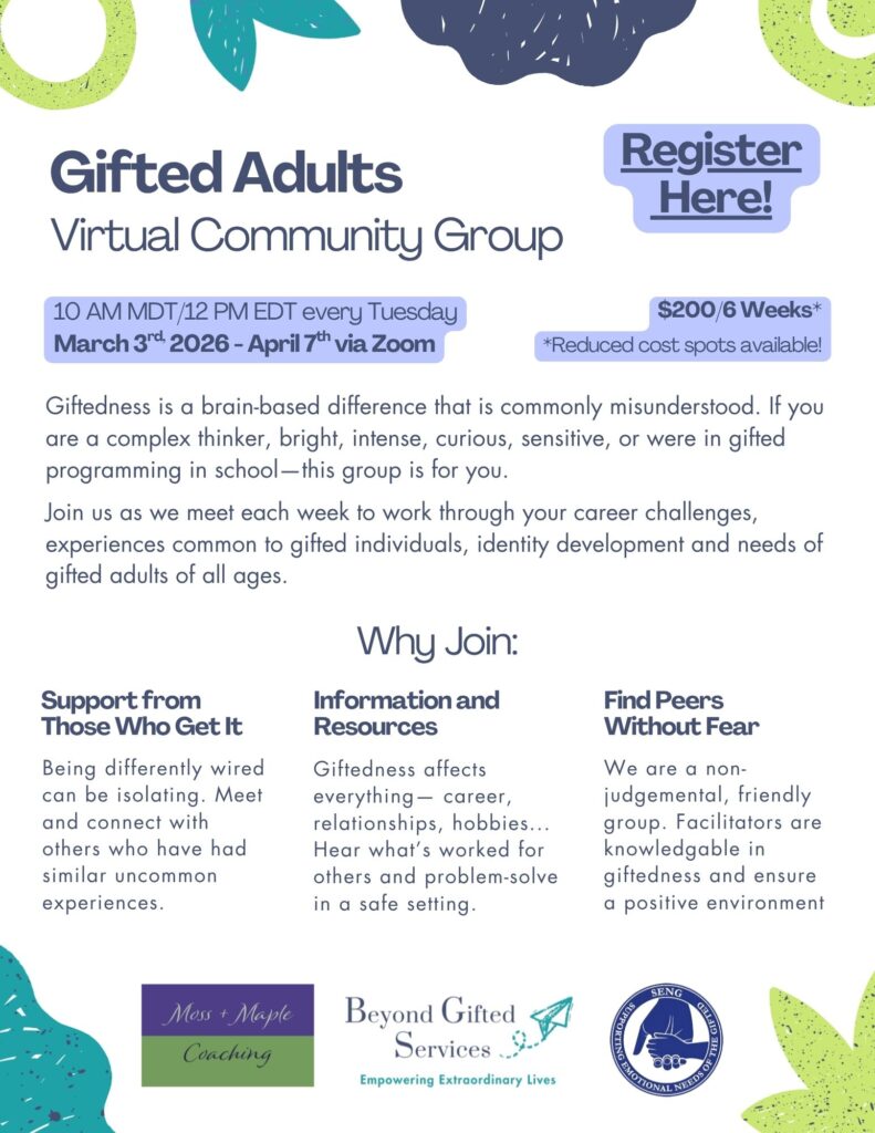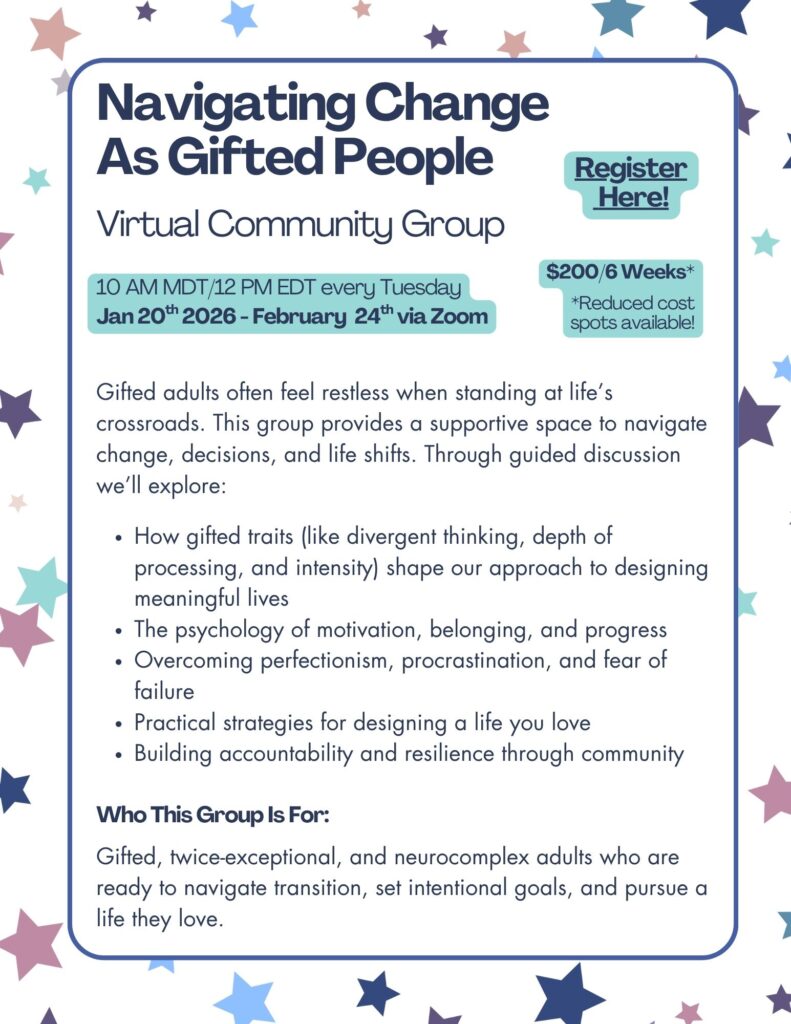 Whether you are looking for school placement for a gifted child, making career decisions as a gifted adult, or seeking to understand what giftedness means for you, I offer personalized coaching and expert guidance grounded in 15+ years in the field.
