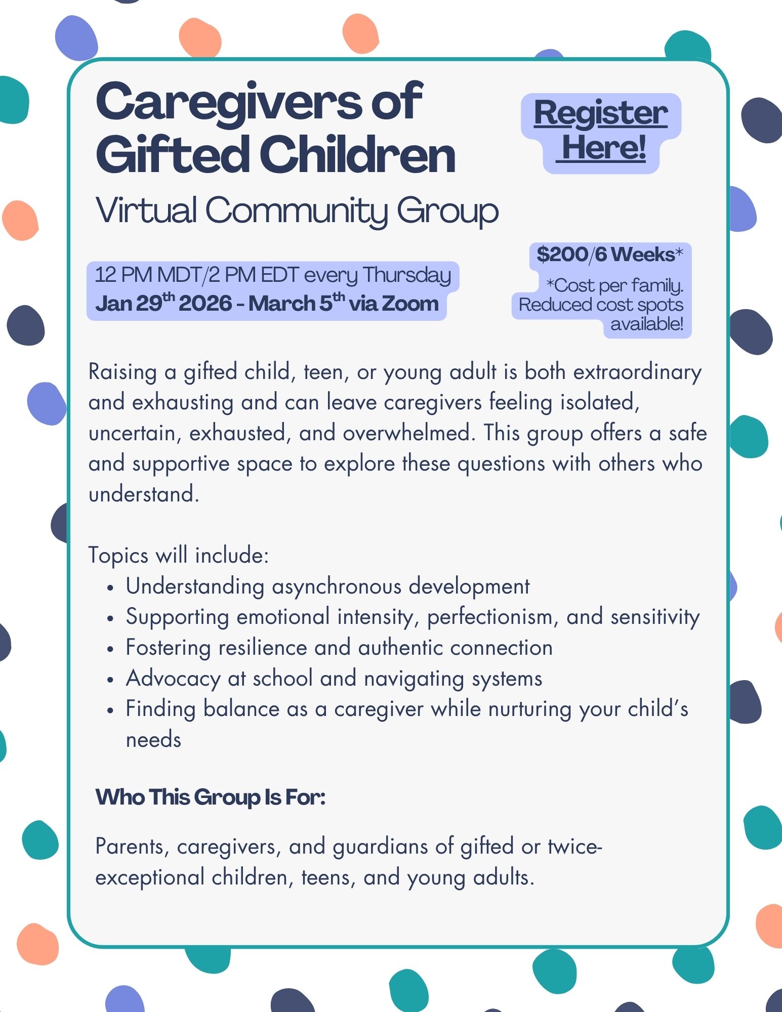 Whether you recently learned about or are exploring your giftedness, have been in the gifted community for years, are raising gifted children, or love a gifted person, you are welcome here!